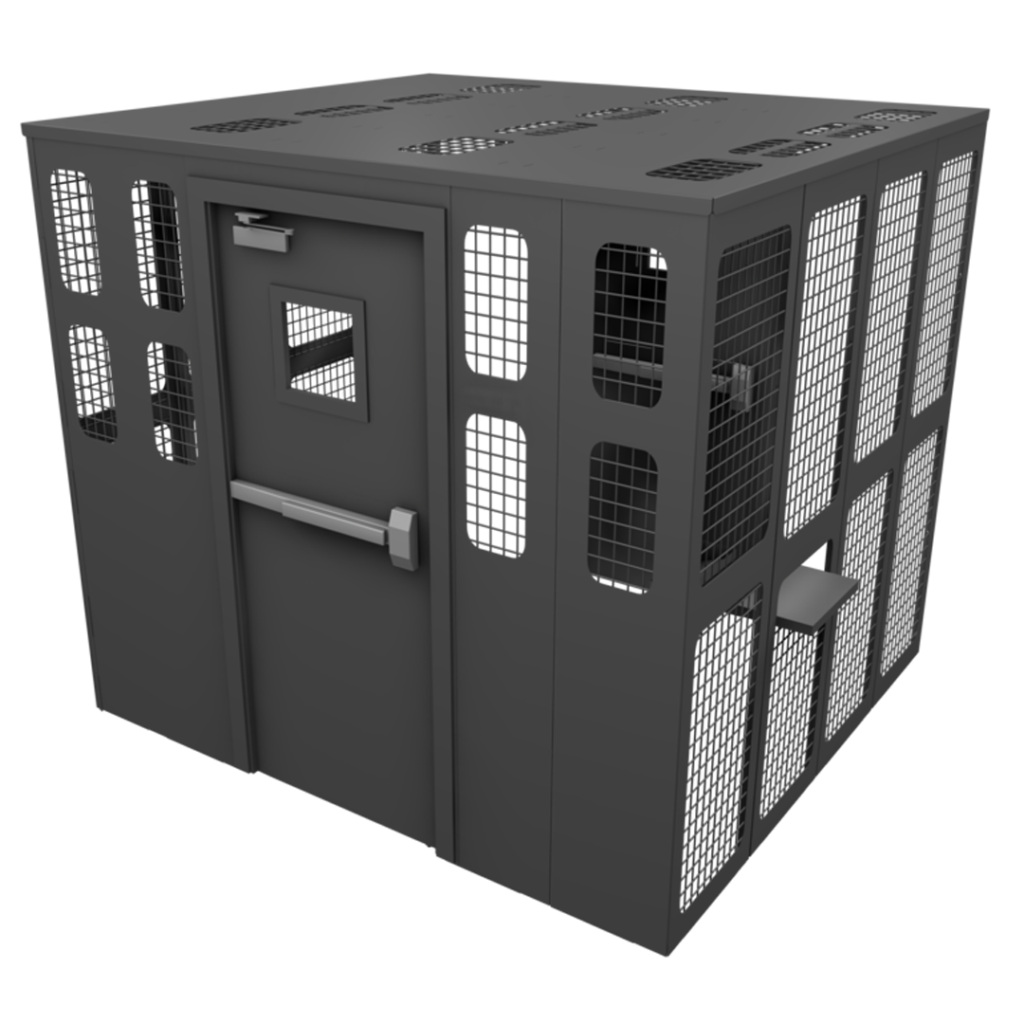 The 8×8 Hinged Door Driver Cage / Mantrap offers a secure solution for facilities with higher traffic or larger entry points. Its American-made construction, reinforced design, and modular flexibility make it ideal for warehouses, distribution centers, and industrial environments where controlled access is critical.