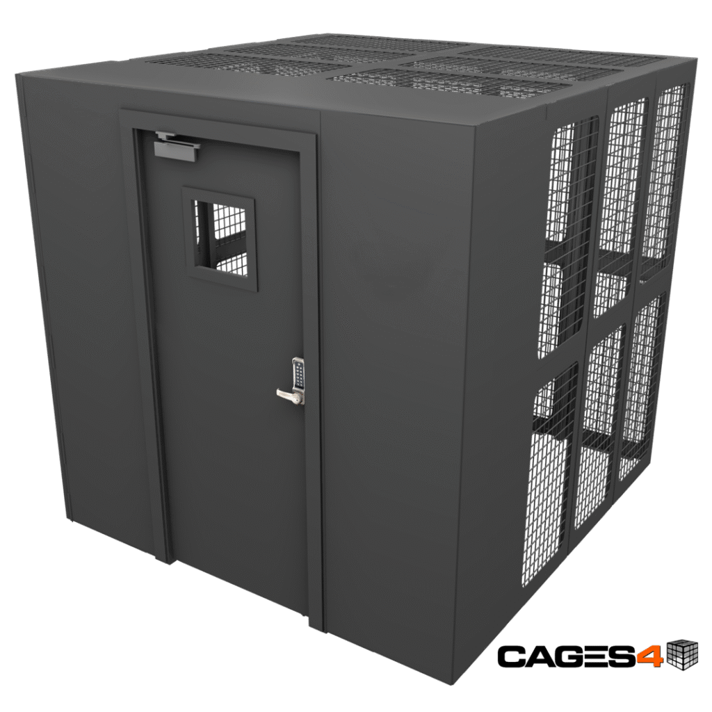 The 8×8 Hinged Door Inventory Cage is ideal for larger storage needs, providing secure, American-made construction for high-value assets. Its modular design and spacious interior make it perfect for businesses that require scalable, reliable inventory protection.